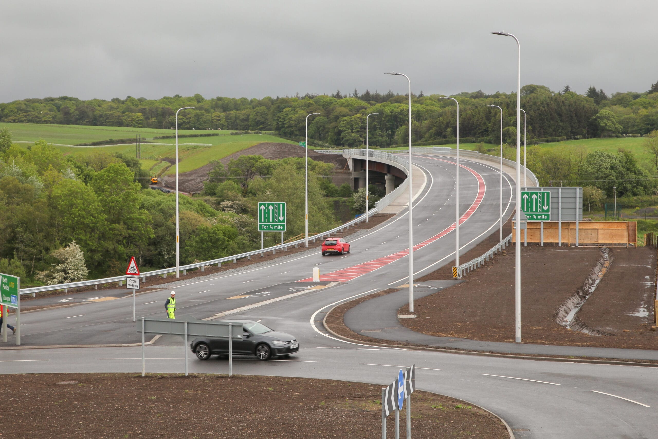 As part of the scheme, a new junction was required to the north and south of the town on the existing A737 trunk road.