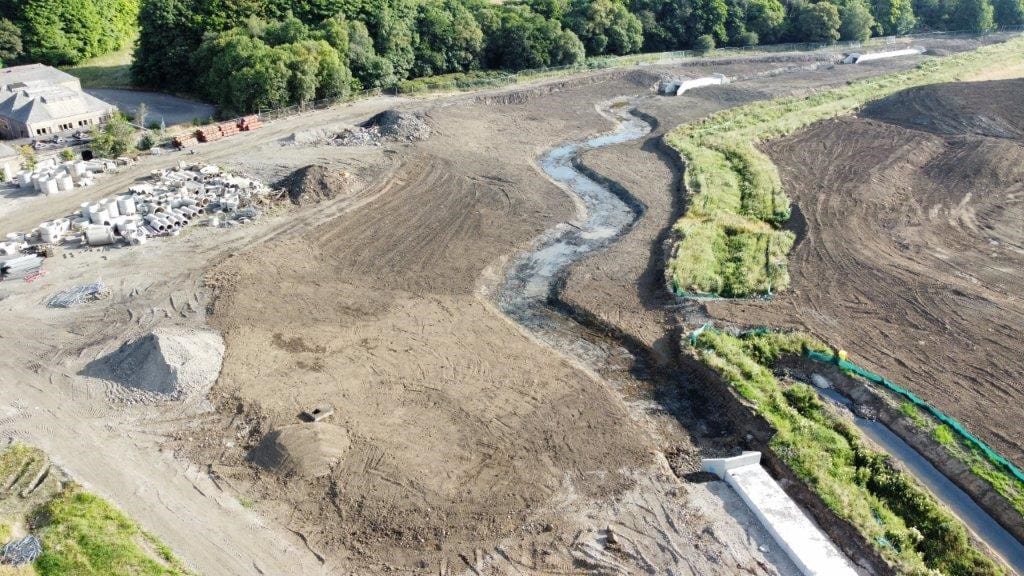Fairhurst was appointed to develop the detailed design of this significant watercourse restoration project over a 1 km length of heavily modified tributary of the Brox Burn in the River Almond catchment in West Lothian. The scheme was an opportunity to achieve environmental improvement, flood risk mitigation and deliver blue / green infrastructure within the major masterplan for re-development of the former Bangour Village Hospital site for residential use.