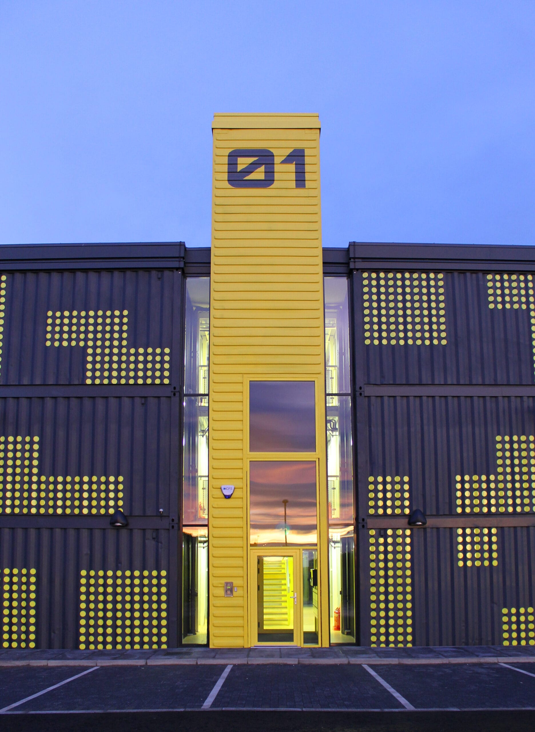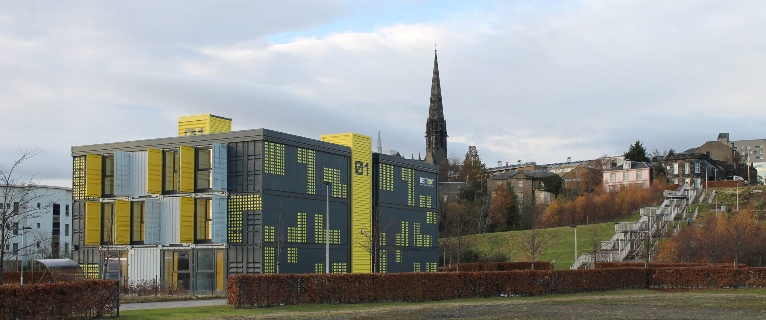Located in Dundee, these modern office buildings were designed for start-up businesses. The innovative sustainable use of surplus storage containers created a bright and spacious office complex. Fairhurst visited various suppliers of used storage containers and selected several based on their condition. We evaluated the eligibility of the containers to comply with the structural modifications required to meet the client brief and fulfil the building regulations.