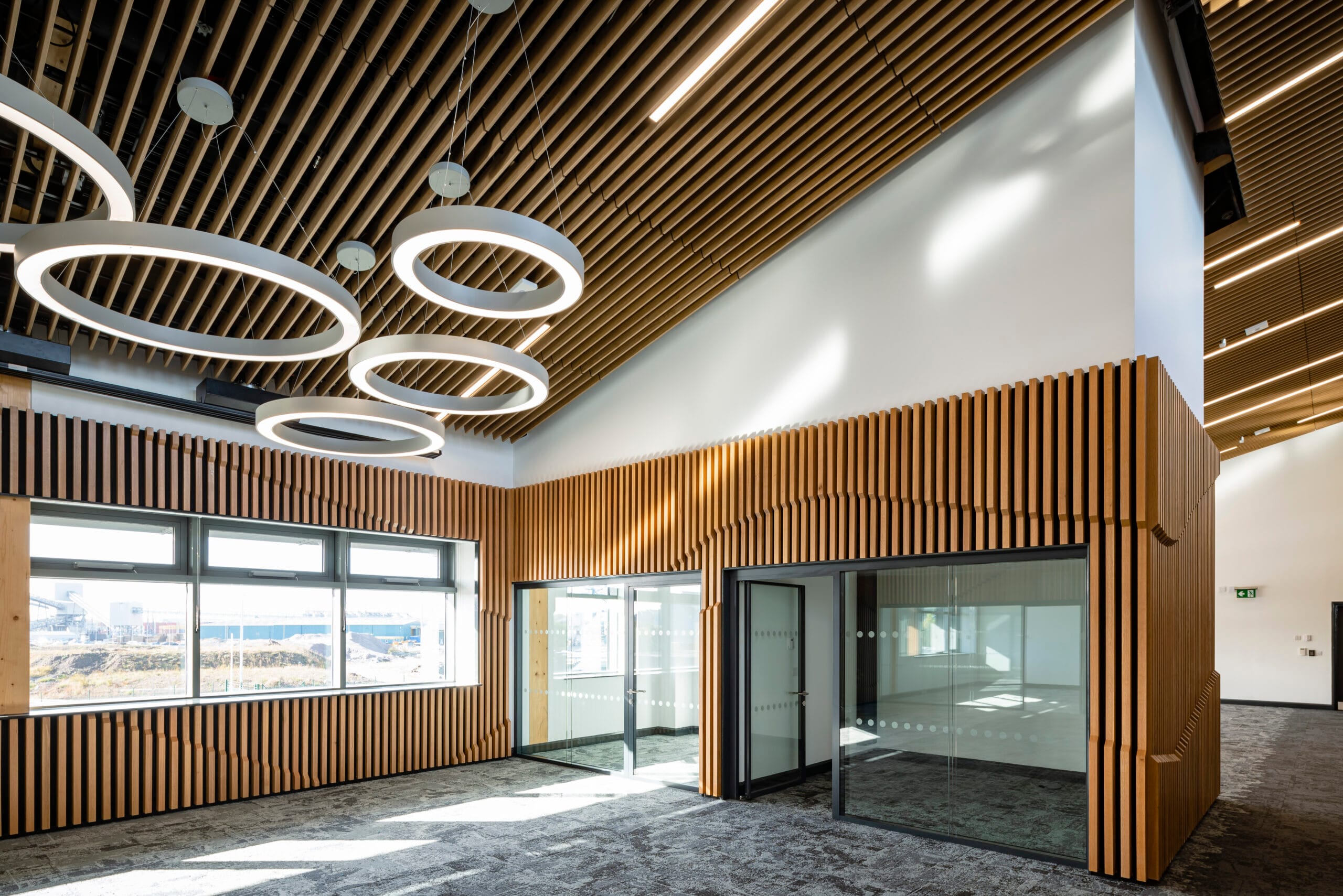 The composite timber and steel frame hybrid chosen for the building’s structure was considered optimal in terms of structural efficiency and reduction in embodied carbon.