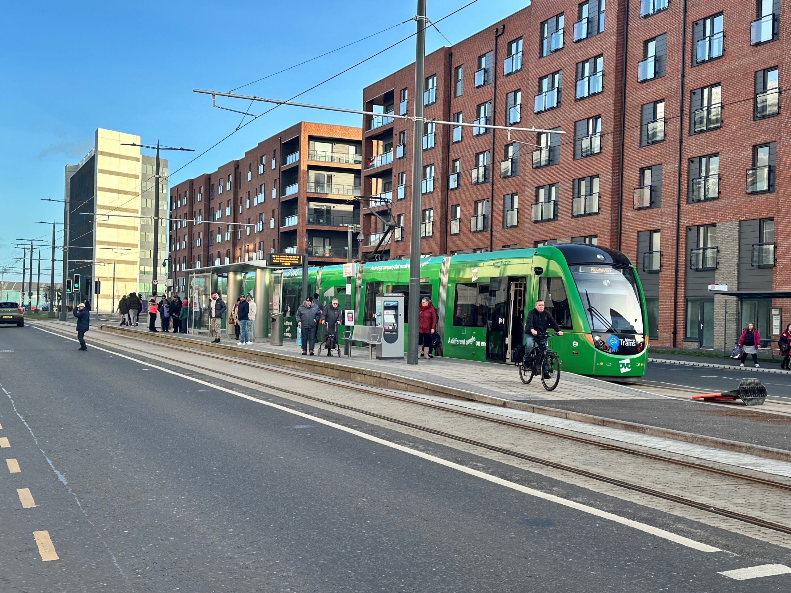 The scheme, in addition, included eight new tram stops, numerous junction improvements, new segregated cycling facilities and hard and soft landscaping and public realm features along the whole length of the route.