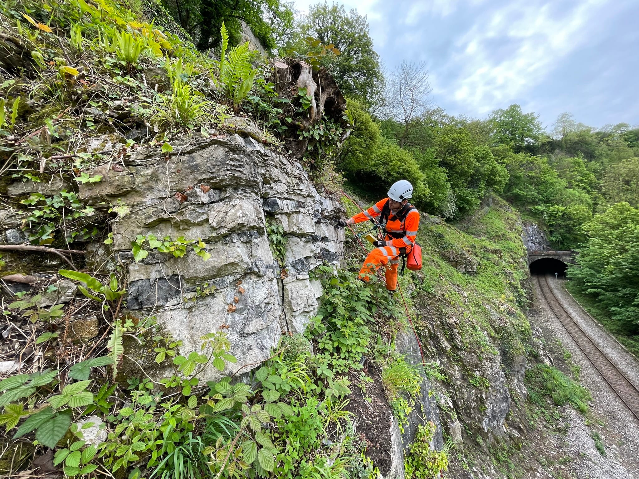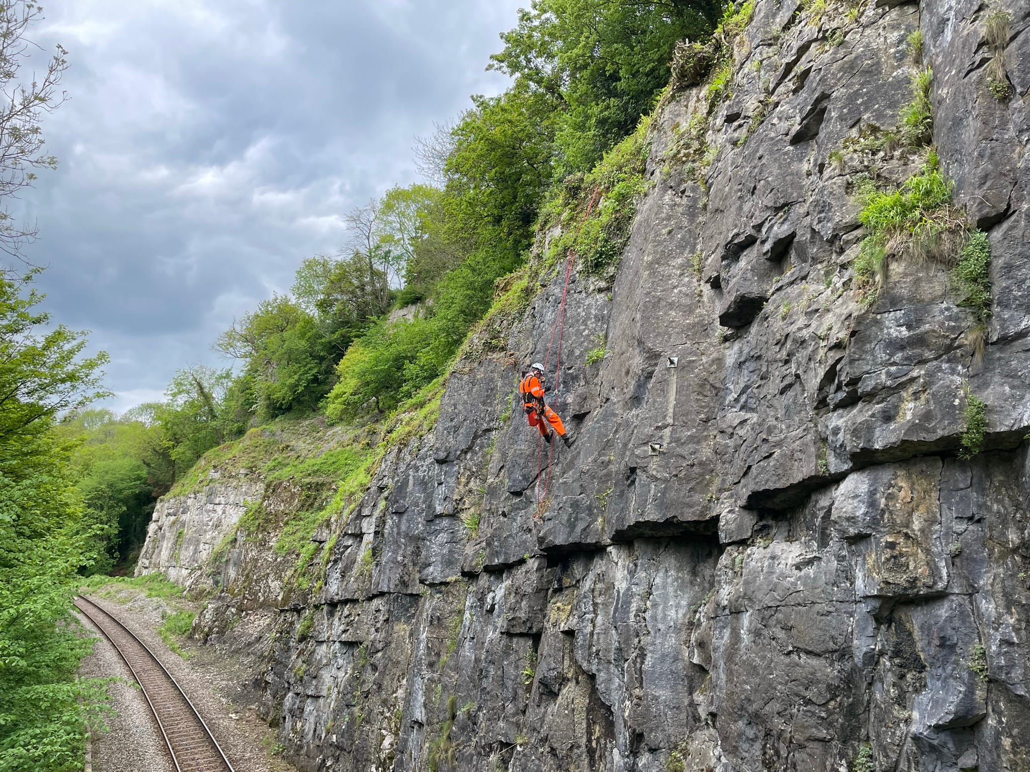 Our Engineering Geologists inspected the slope from track level and via rope access techniques to record rock discontinuity data and make observations on the structure and stability of the rockmass. In addition to the assessment of size and frequency of rockfall hazards on the slope, consideration was given to the likelihood of those rockfalls affecting the line, culminating in the completion of a qualitative risk appraisal. This was followed by a high-level appraisal of remedial options to reduce the identified risks.