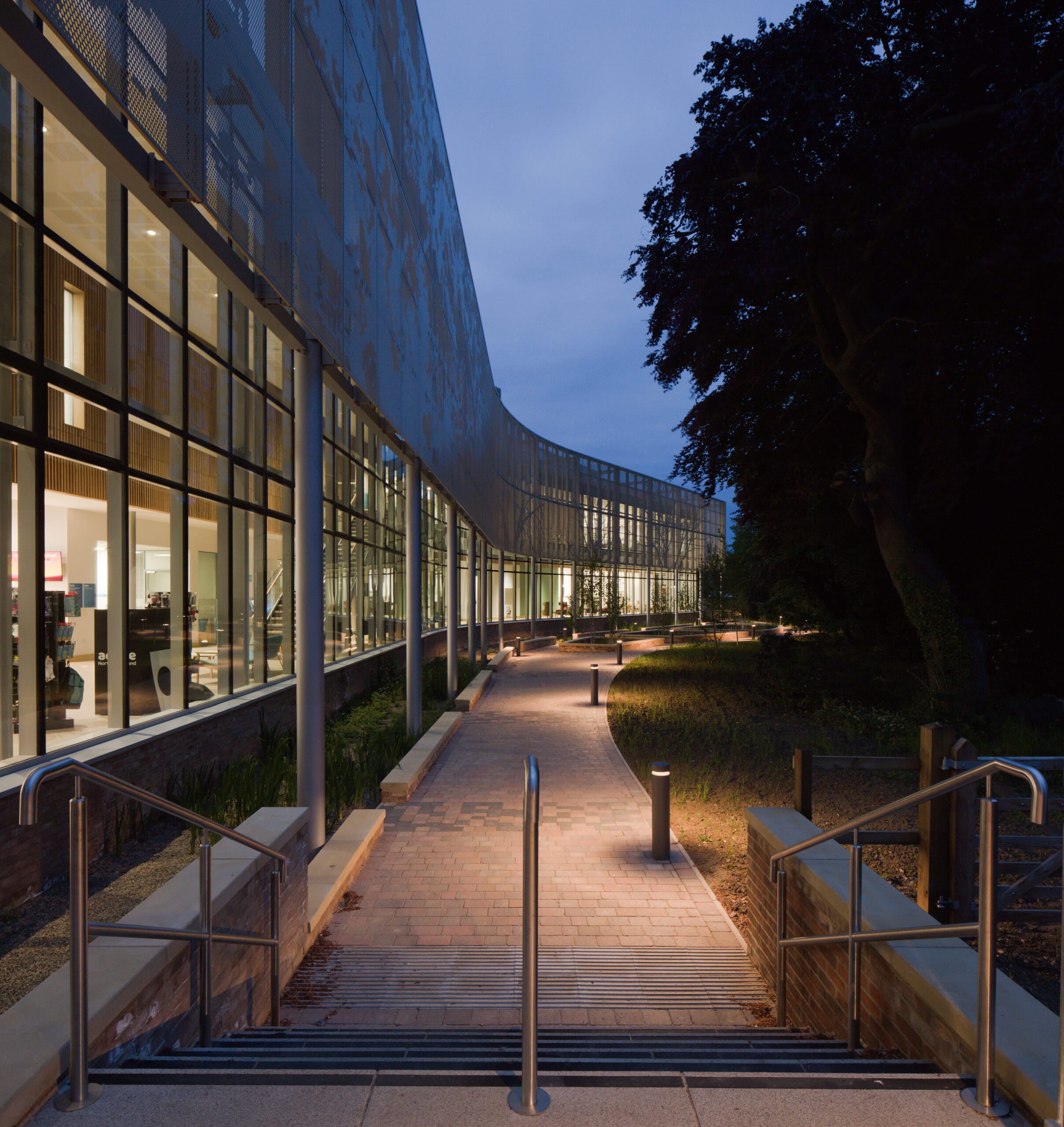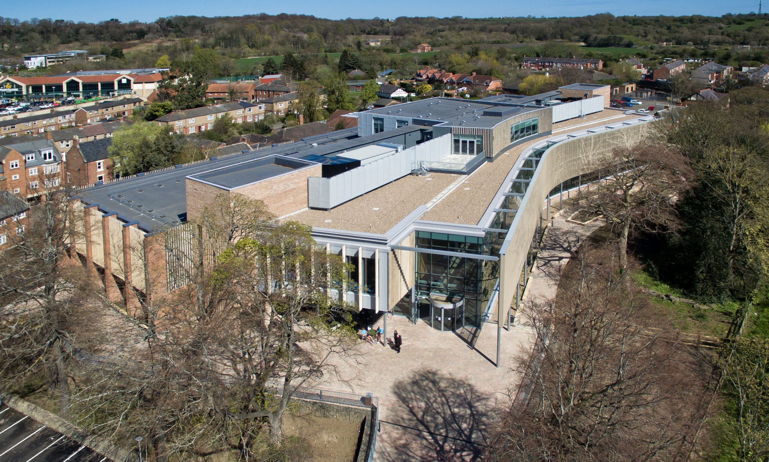 Located in Morpeth Town Centre, the newly built leisure centre has expanded the high street and provided a state-of-the-art facility for the community. The £21m development includes a six-lane 25m swimming pool with spectator seating, additional fitness suites, spa facilities, educational areas, café and sports hall are all included within the community-focused facility.