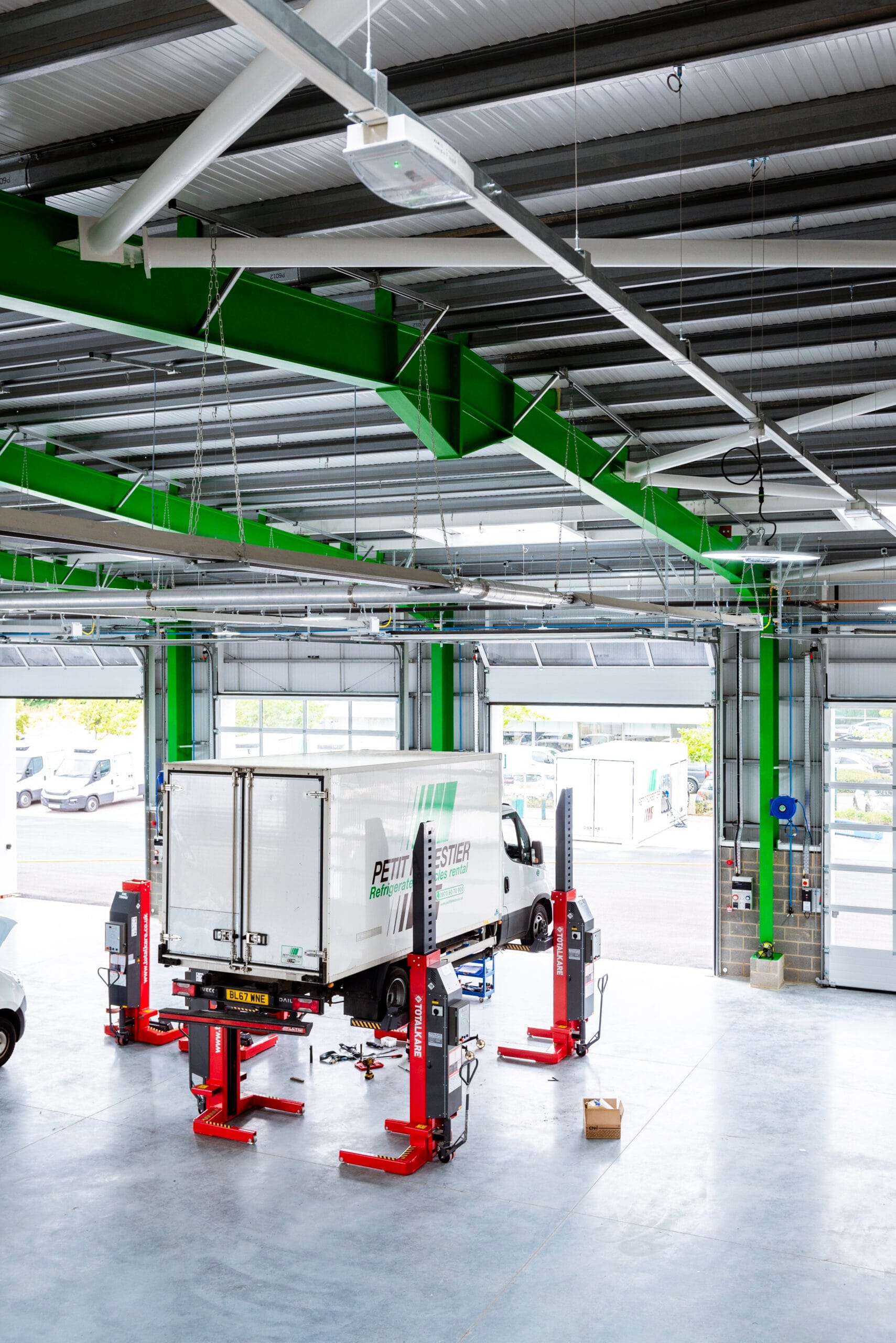 This development comprises a three-storey depot for the hire and maintenance of refrigerated vehicles. The new facility incorporates 5 No. workshop bays, office space, storage, a staff communal area, staff car parking including areas for cycle and motorcycle storage, access roads and perimeter soft landscaping.