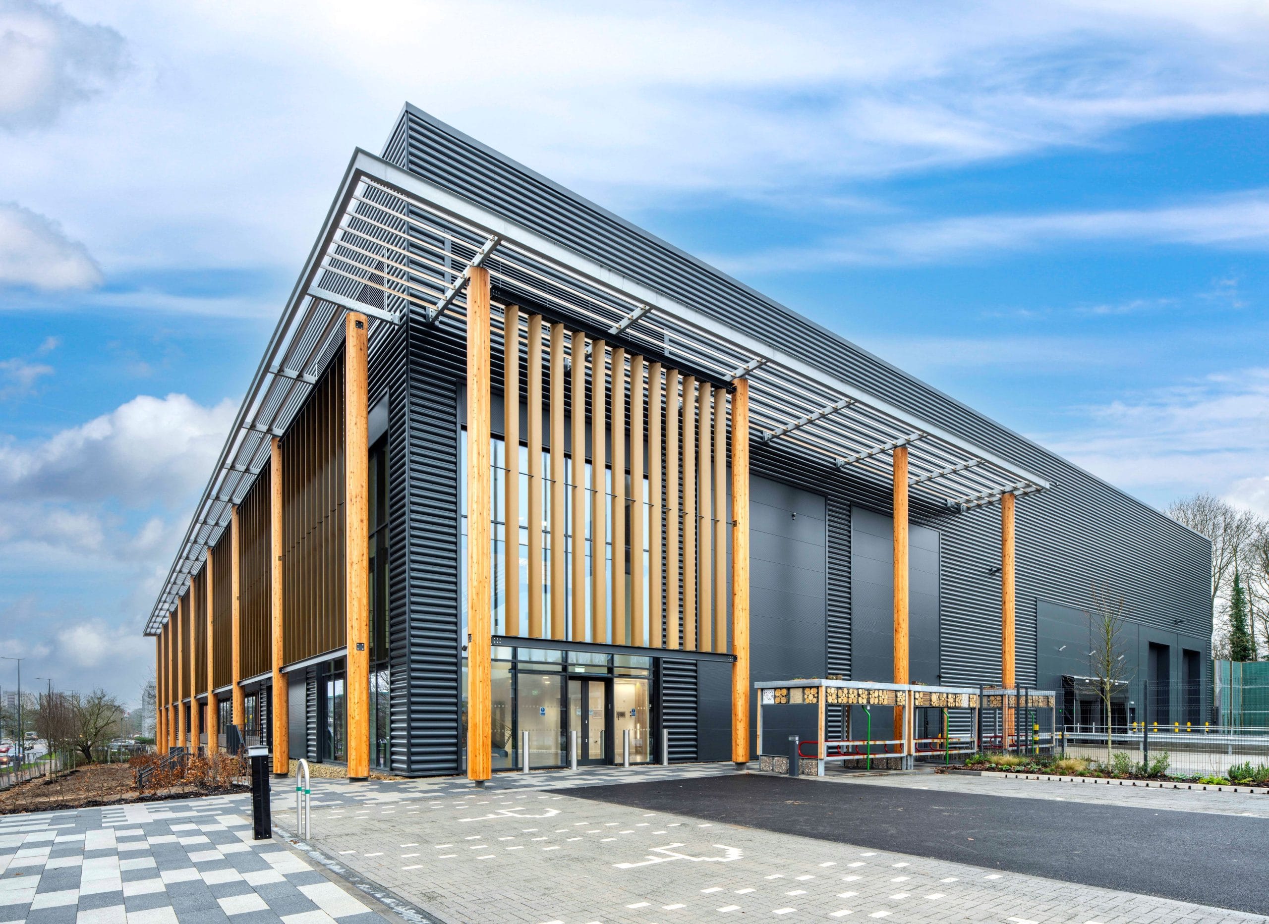 Sustainable features include photovoltaics on the building (which can be expanded to generate up to an estimated 175kWp), LED lighting and the installation of EV charging points, all of which contribute to a reduction in energy use and CO2.
