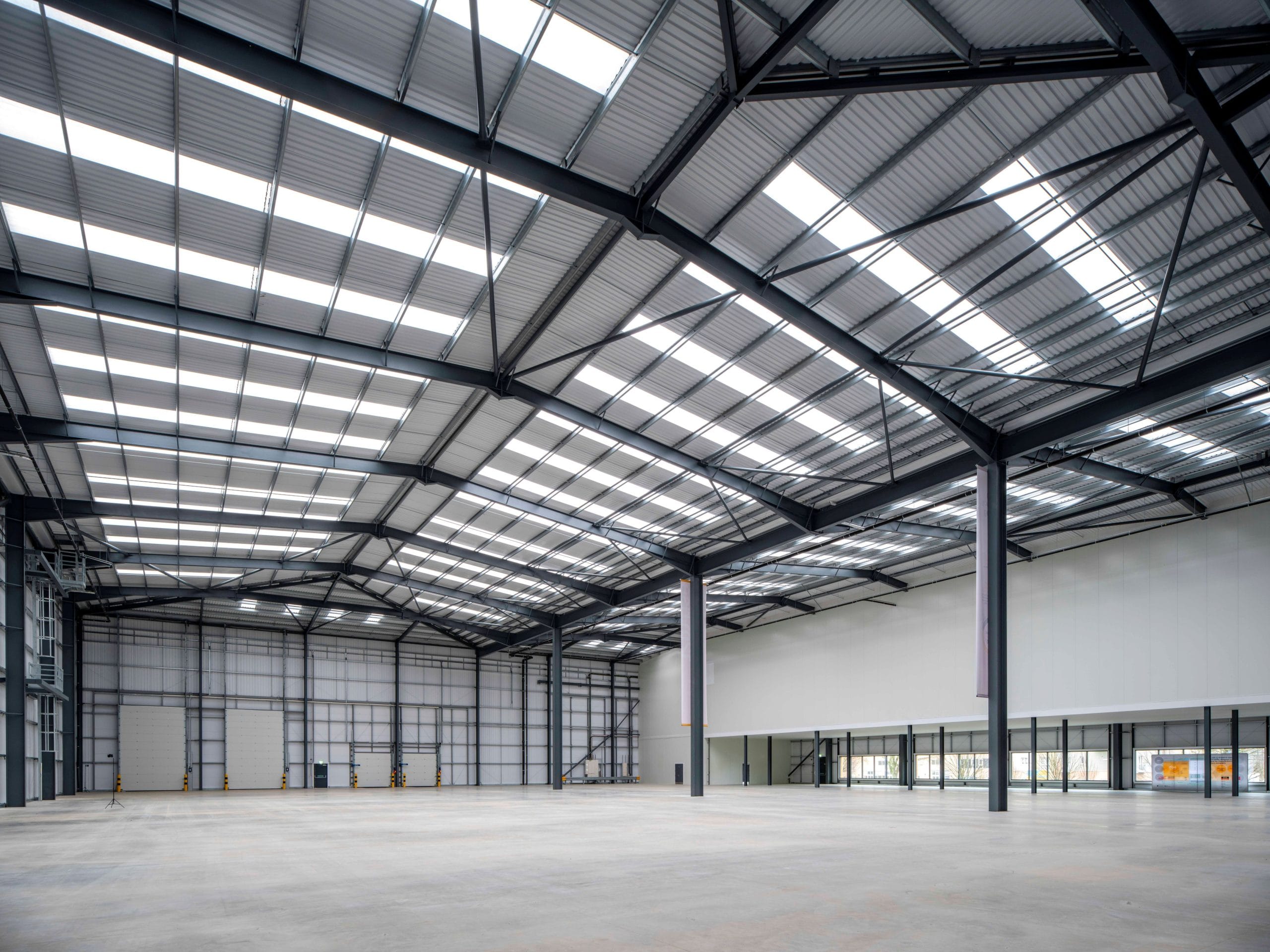 The 55,000 sq. ft warehouse has a clear height to the underside of the portal frame haunch of 12m with a service yard to the front that also incorporates parking areas. The service yard was carefully considered to allow for the provision of two recessed dock leveller positions as well as two level access door positions giving any potential occupier plenty of flexibility.