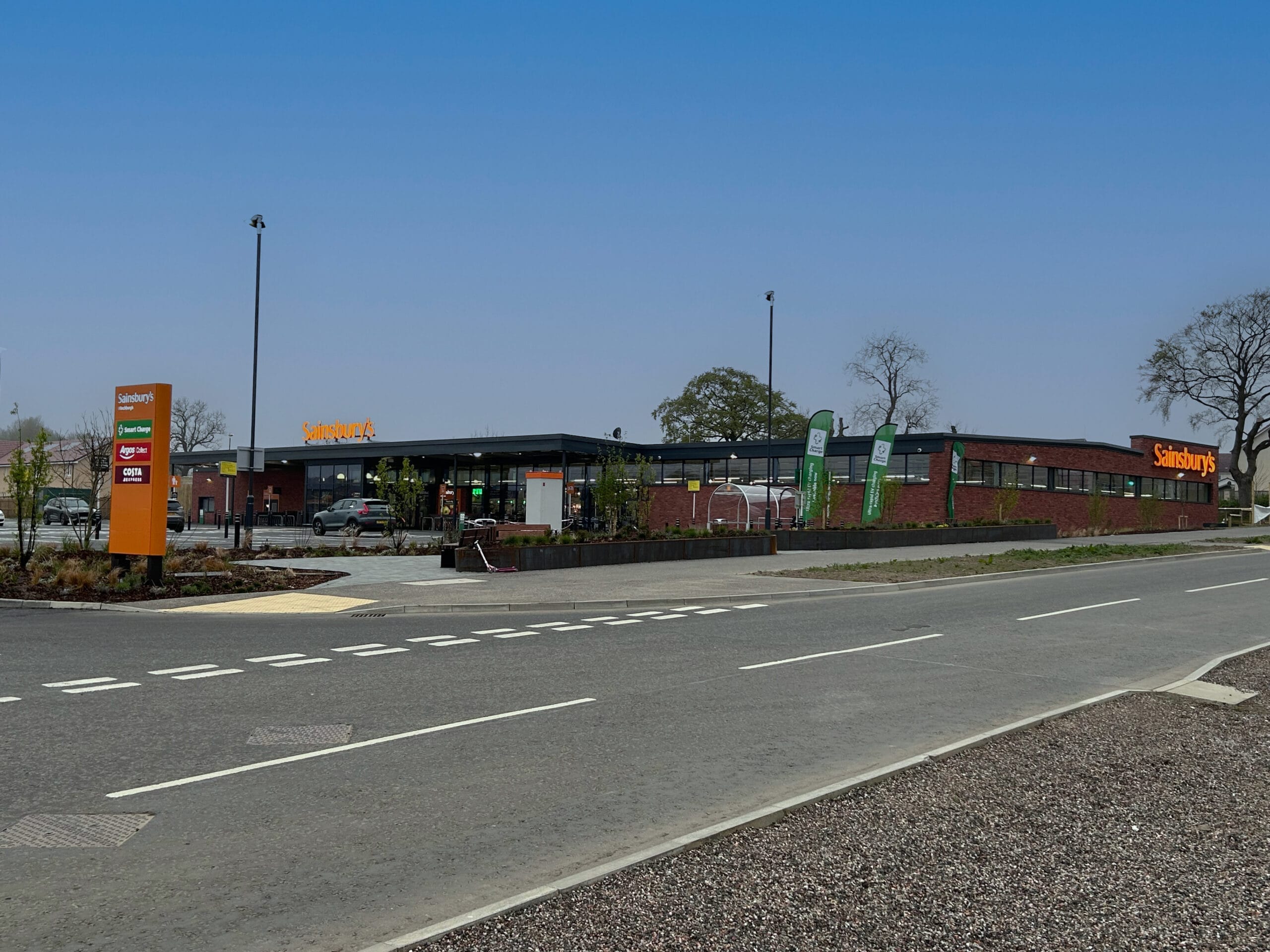 New 2,000m2 single storey food retail store for Sainsburys Supermarket Ltd and design and build contractor CTS (Shopfitting) Limited, at Winchburgh, West Lothian, completed April 2024.