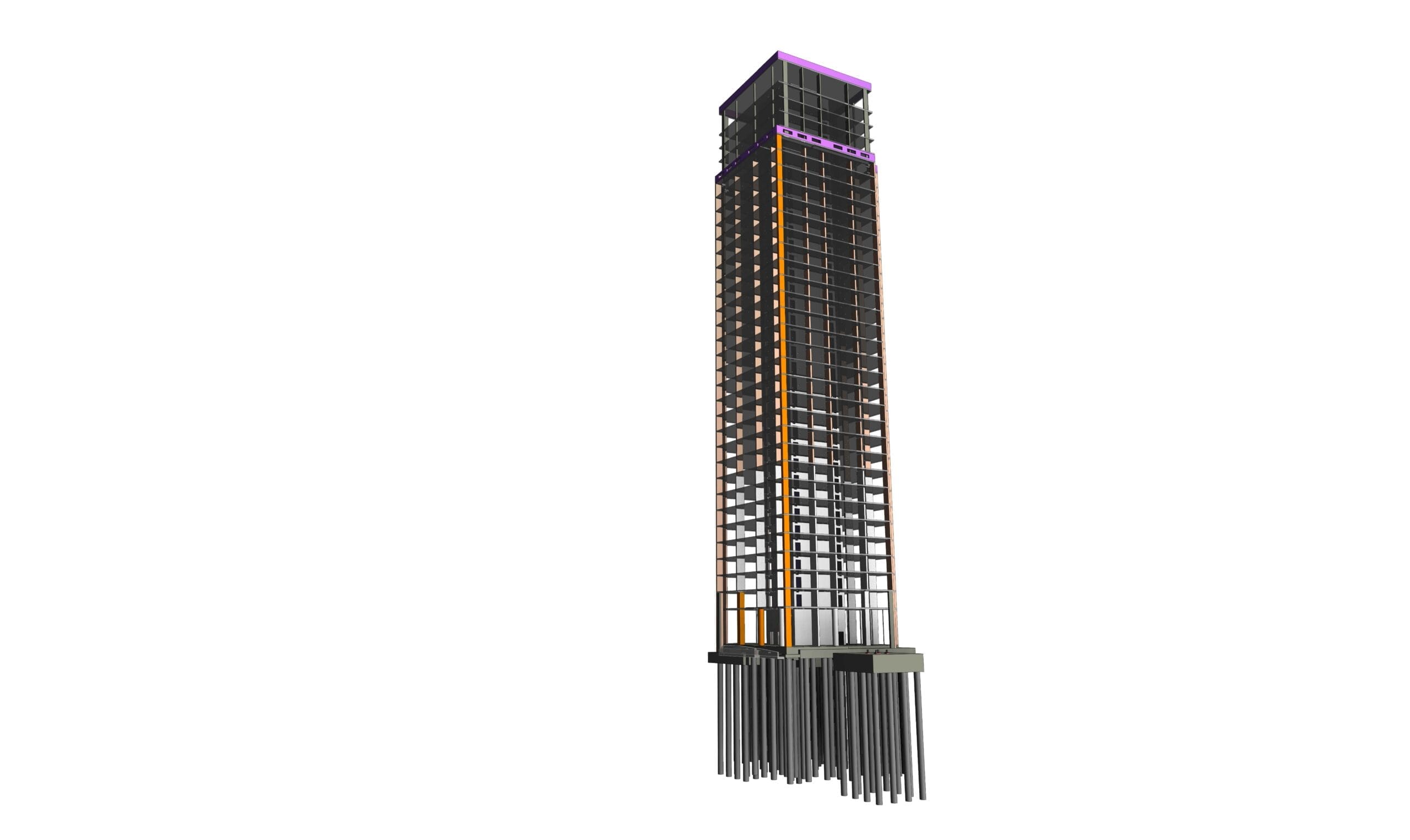 This arrangement lent itself to the structural concept of one set of columns located on the periphery of the tower supporting flat slabs which run back into the shear core, which will be acting as the main primary lateral stability element in all directions.