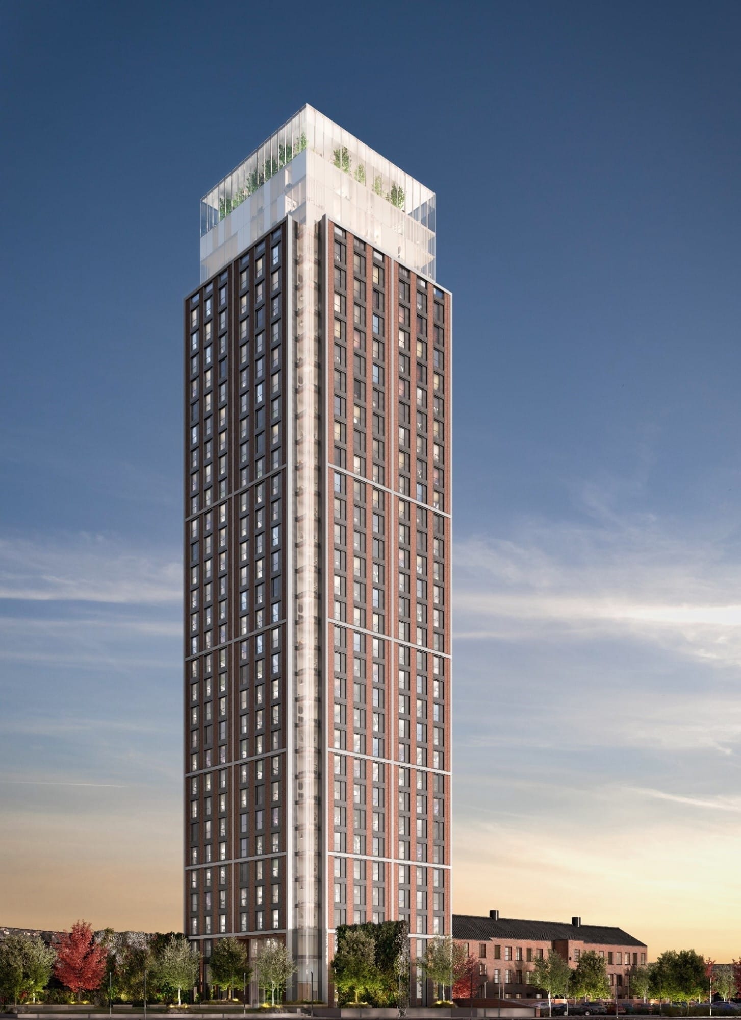 The Sky Gardens development comprises of one new 34-storey building known as Midland Tower. It also comprises of the refurbishment/renovation of the existing Midland Mills buildings, which were originally the Midland Junction Foundry (Iron and Brass), into new residential and commercial areas.