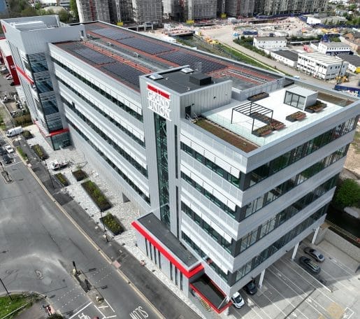 The client’s sustainability requirements were delivered through the extensive use of green living walls, EV vehicle charging, the use of timber for cladding elements and the creation of external amenity space for staff and visitors. The car parking areas have been formed using cellular mats with gravel infills for the parking bays.